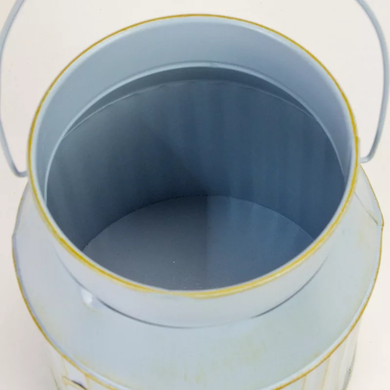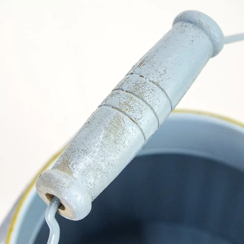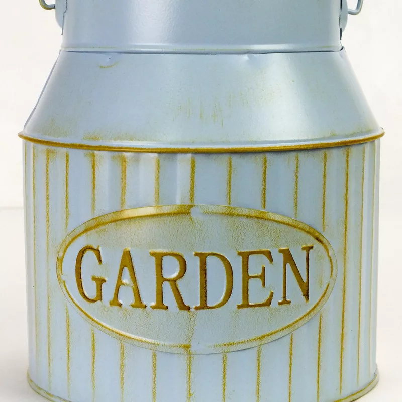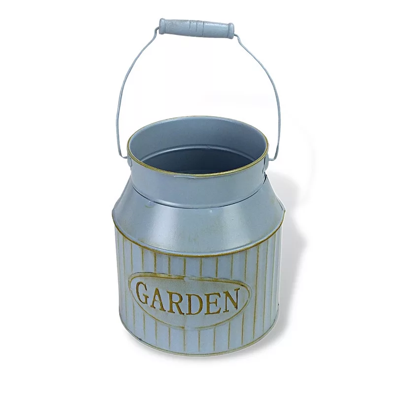 "Garden" feliratos bádog kaspó, fa fogantyús füllel.