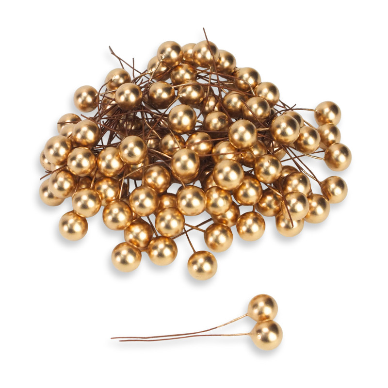 Az arany színű beszúrós bogyó elegáns és jól kombinálható dekorációs kiegészítő. Az 1 cm átmérőjű bogyók finom fényt adnak a kompozícióknak, miközben nem vonják el a figyelmet a fő díszítőelemekről.Ideális koszorúk, asztaldíszek, virágdobozok és egyéb kreatív dekorációk készítéséhez. A beszúrós kialakítás megkönnyíti a rögzítést, a 100 darabos csomag pedig gazdaságos megoldást kínál nagyobb projektekhez is. Az arany árnyalat ünnepi, mégis visszafogott megjelenést biztosít, jól illeszkedik természetes, fehér, krém vagy sötétebb tónusú dekorációkhoz egyaránt. Tartós kivitelének köszönhetően hosszú ideig megőrzi esztétikus megjelenését.