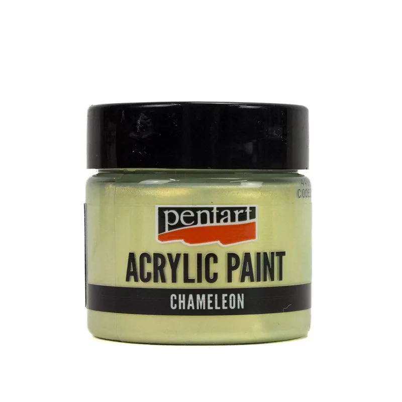 Kétszínű, gyöngyház hatású, áttetsző festék. Vízbázisú.
