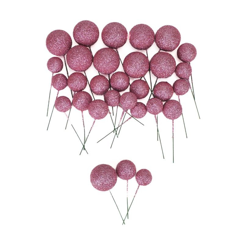 A 3-5 cm-es csillámos gömb pikk ideális kreatív dekorációkhoz, például asztali középpontokhoz vagy dekoratív üveg edényekbe helyezve.