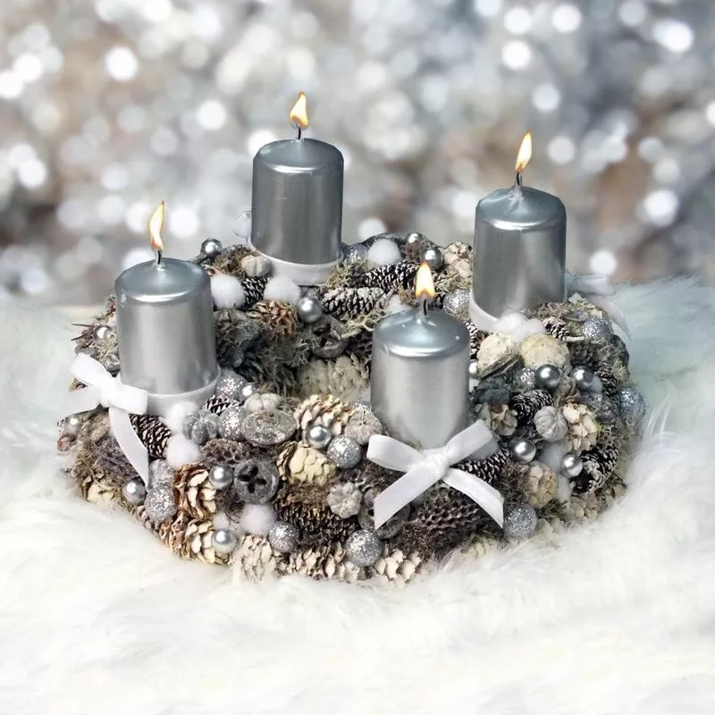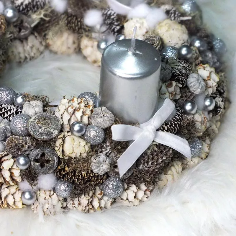 Csináld magad! - Masnis ezüst adventi koszorú 24cm