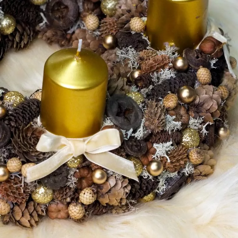 Csináld magad! - Masnis terméses arany adventi koszorú 25cm