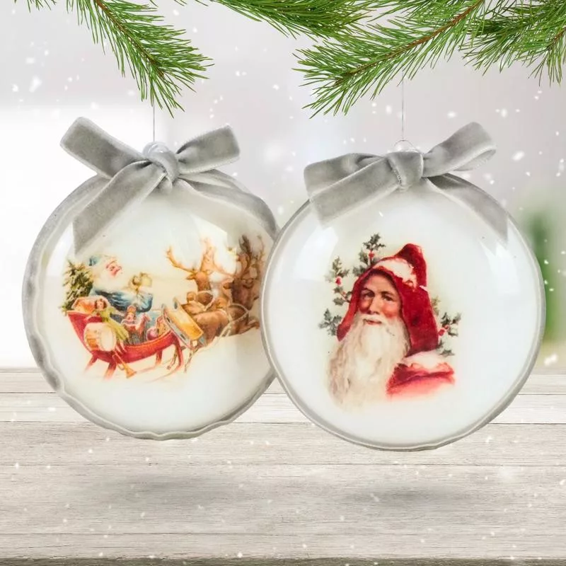 Csináld magad - Műanyag lapos gömb karácsonyi mikulás díszítéssel 2db