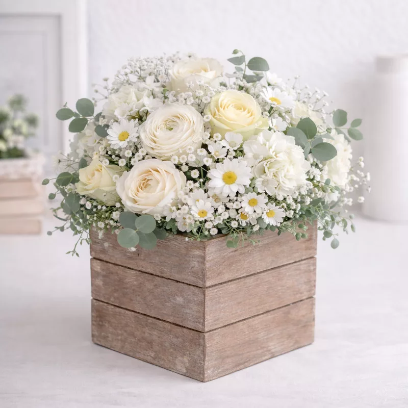 A vintage mini dekoláda kedves, kisméretű díszláda, amely kiváló alap kisebb dekorációk, virágos kompozíciók vagy ajándékcsomagok összeállításához. Letisztult és romantikus megjelenése miatt könnyen illeszthető tavaszi, vintage vagy country stílusú dekorokba.