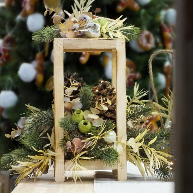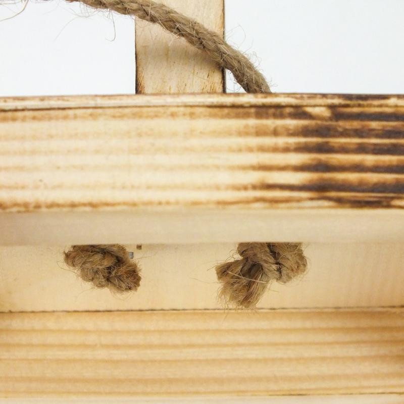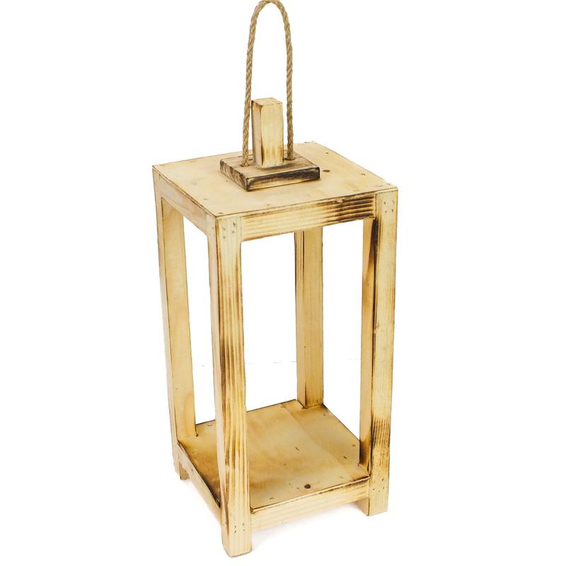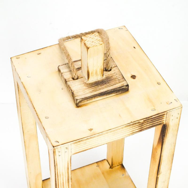 Égetett szélű, fa lanterna. A belsejében kialakított hellyel, az egyedi dekorációk és készítmények részére. Zárt tetejű, spárgával ellátott akasztóval. Kiváló választás fotózásokhoz, esküvőkre, természetbarátok számára díszítőelem, illetve kültéri eseményekre.