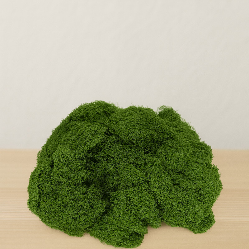 Élethű moha selyemhatású szálakból, tartós és újrahasználható kivitelben. Ideális virágkötészethez, koszorúkhoz, asztaldíszekhez és kreatív dekorációkhoz. Nem szárad ki, könnyen formázható. Sötét, elegáns zöld árnyalat, amely mélységet és kontrasztot ad a dekorációknak.