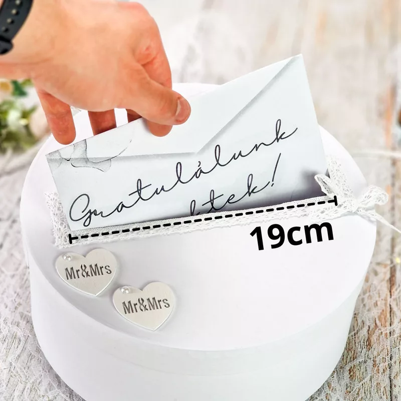 Esküvői persely fehér csipkés-szíves 25cm