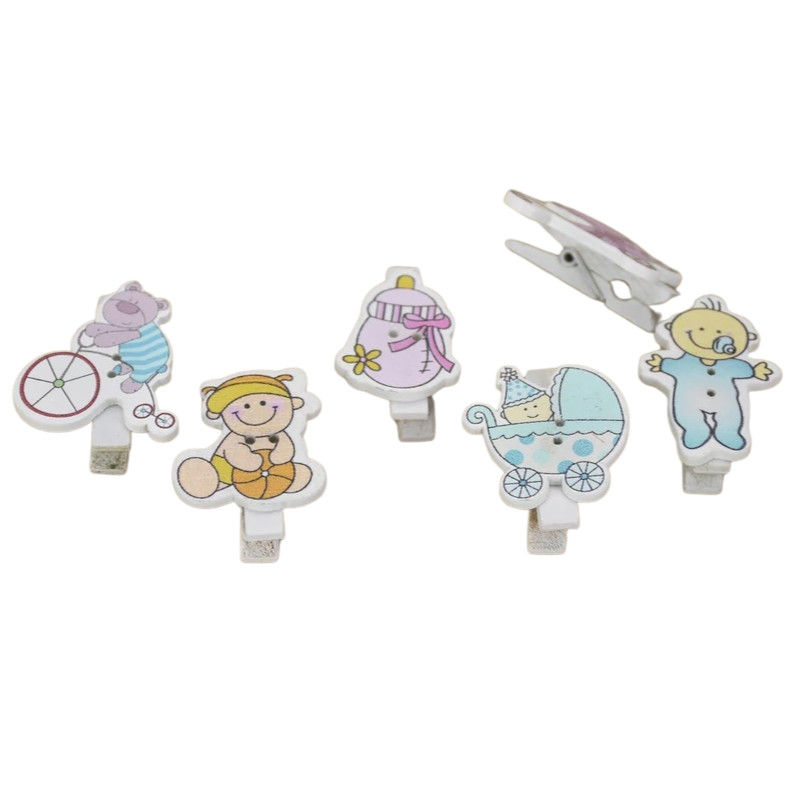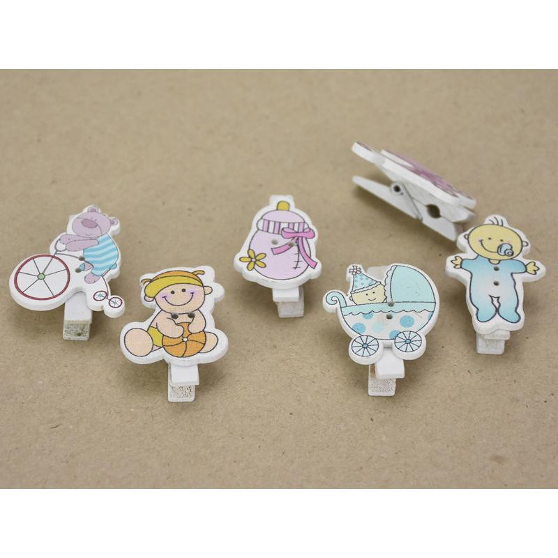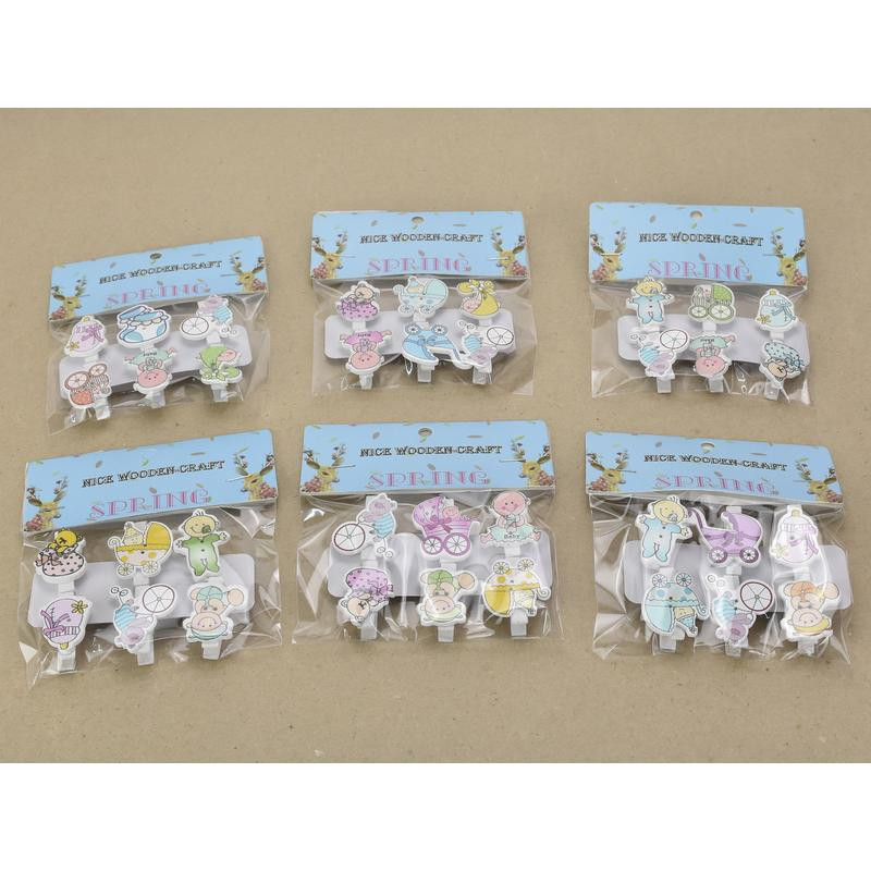 Fa csipesz babaváró figurás 6 csipesz/csomag