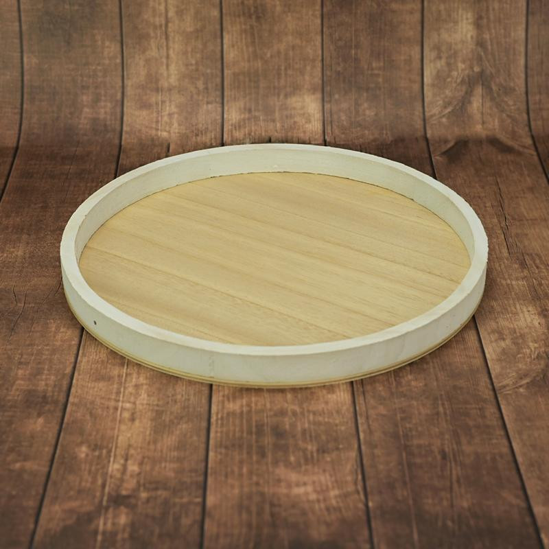 1db fehér kerek dekor tálca, masszív és erős fából. A tálca oldala fehér színű, alja festetlen, natúr.