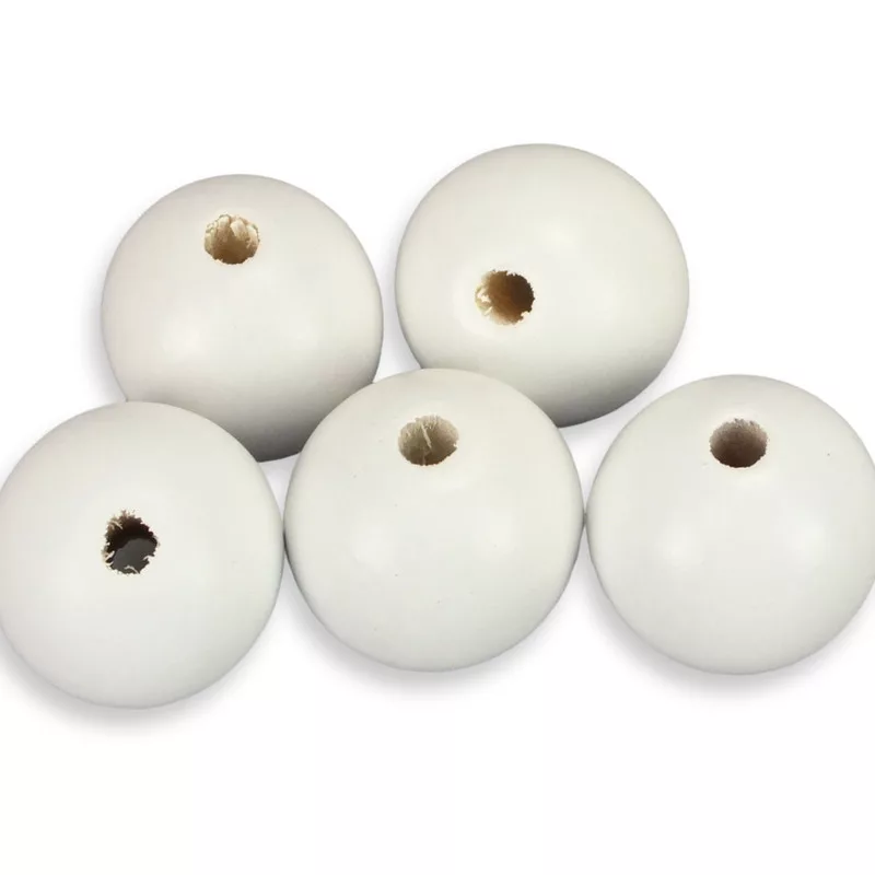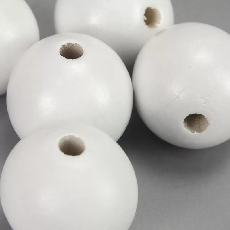 Ezek a fehér, fából készült golyók sokoldalúan felhasználhatóak kreatív projektekhez és dekorációkhoz. A középen található lyuknak köszönhetően könnyedén felfűzhetők, így rengeteg lehetőséget kínálnak különböző kézműves és hobbi projektekhez. Természetes, natúr fa színük miatt jól kombinálhatók más színekkel és anyagokkal, így bármilyen stílushoz illeszkednek.