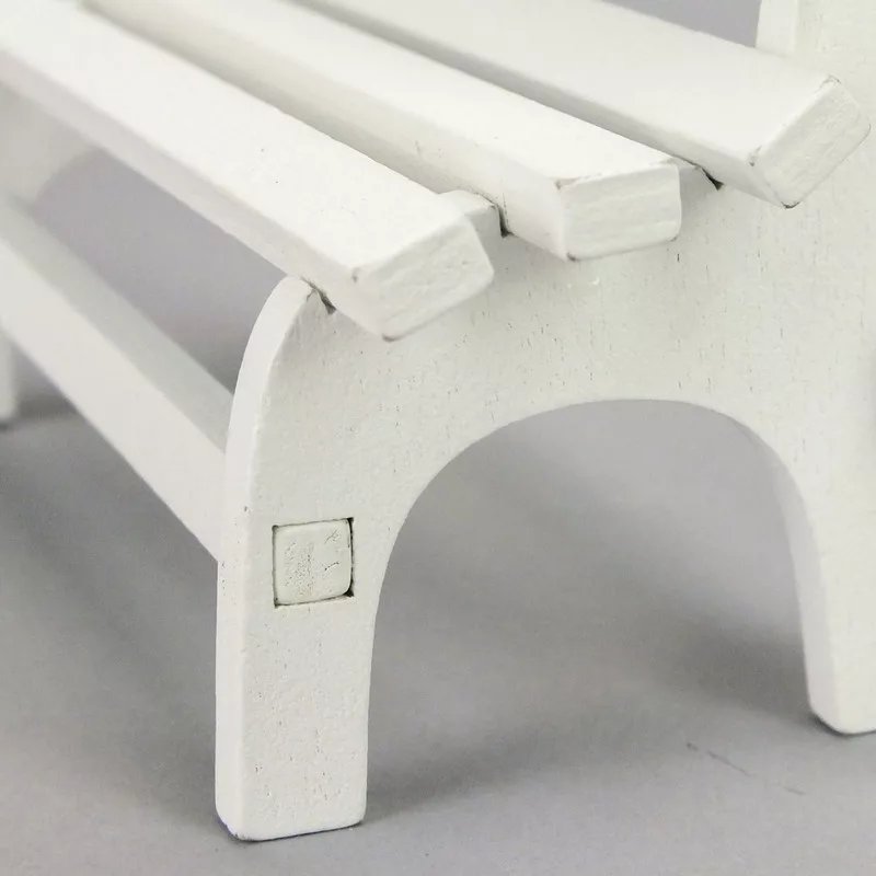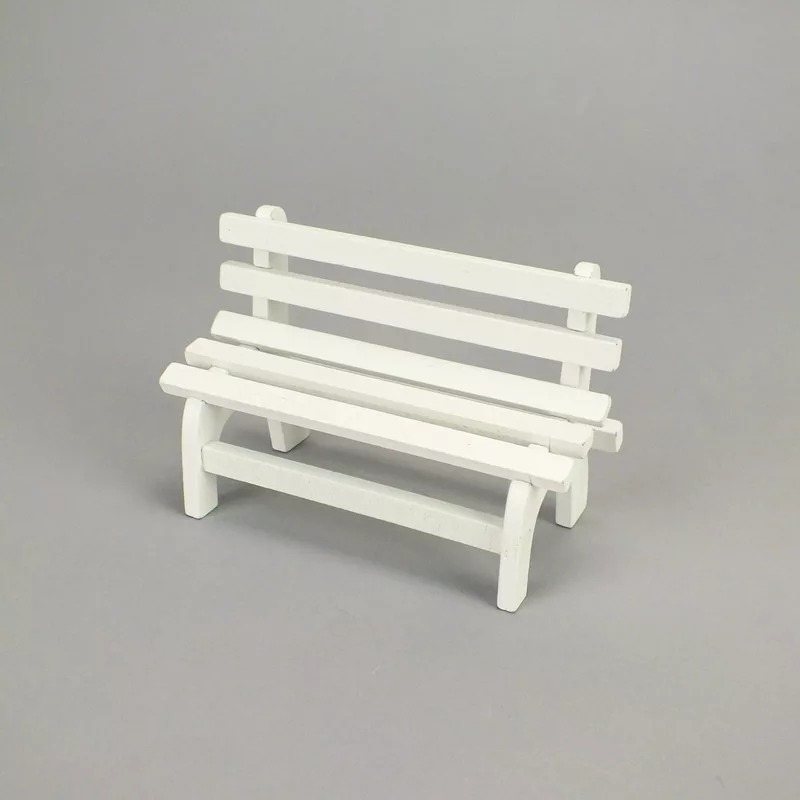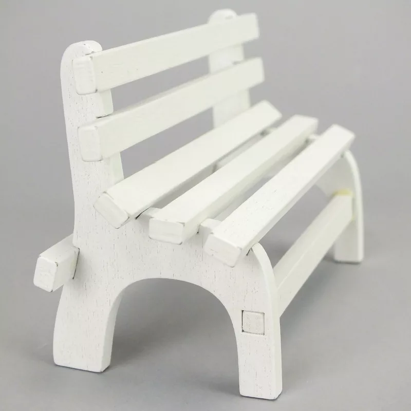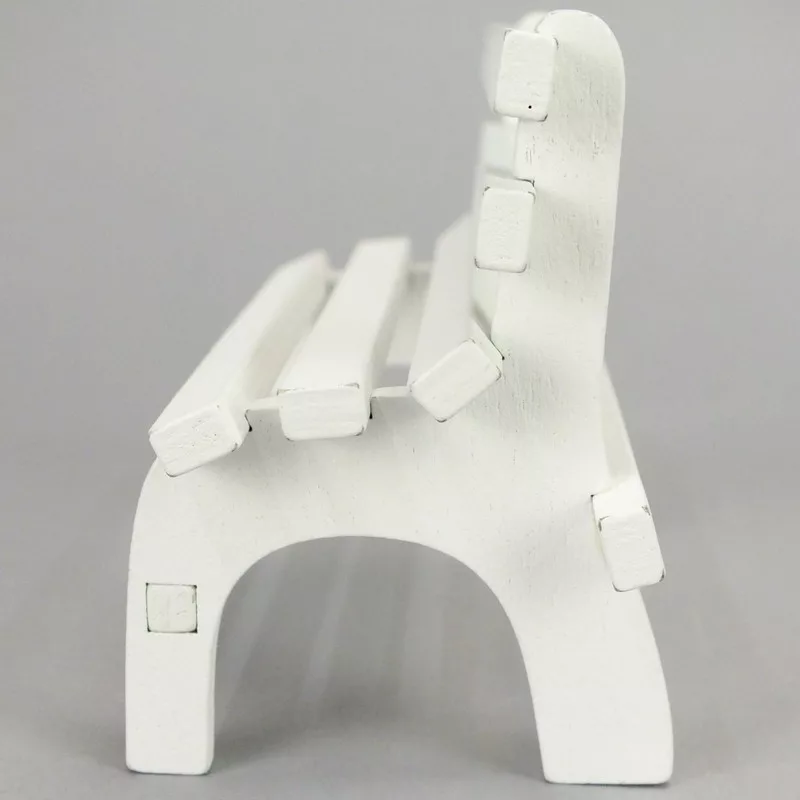 Fehér fa pad, kisebb dekorációk kiegészítője.
