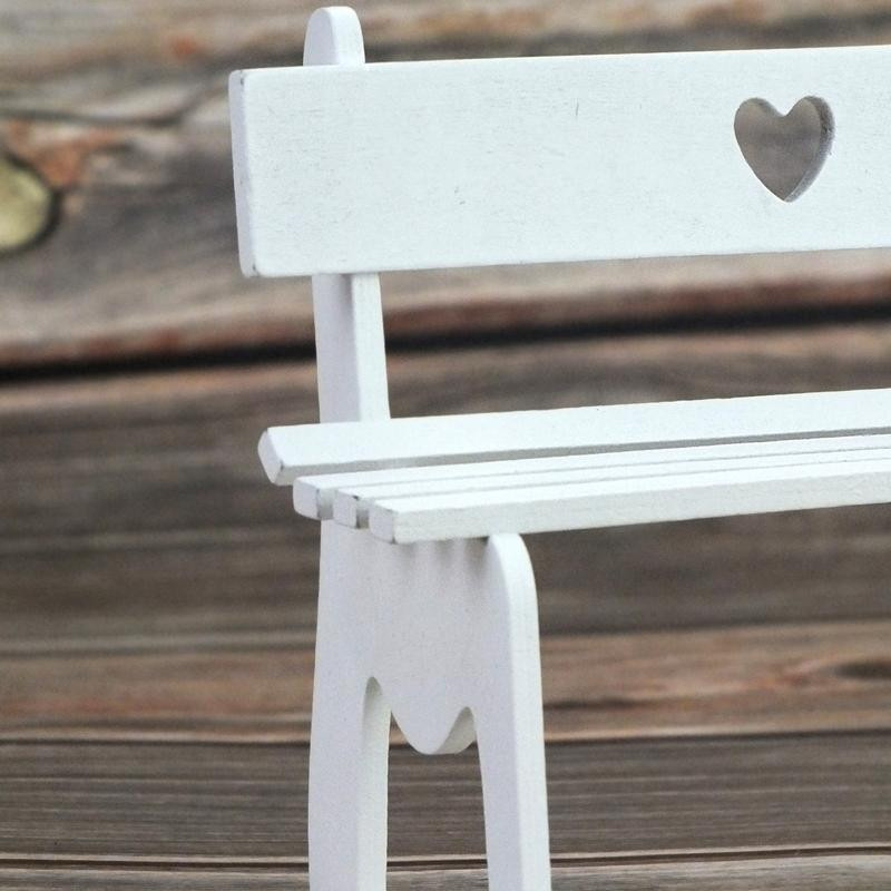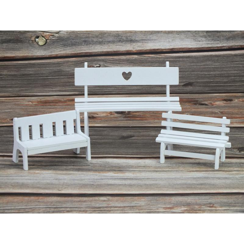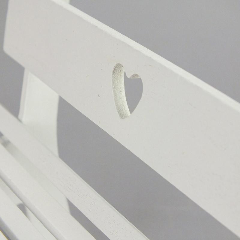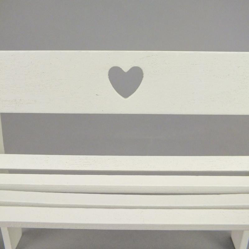 Fehér fa pad, szív mintával. Kisebb-nagyobb dekorációk kiegészítője.