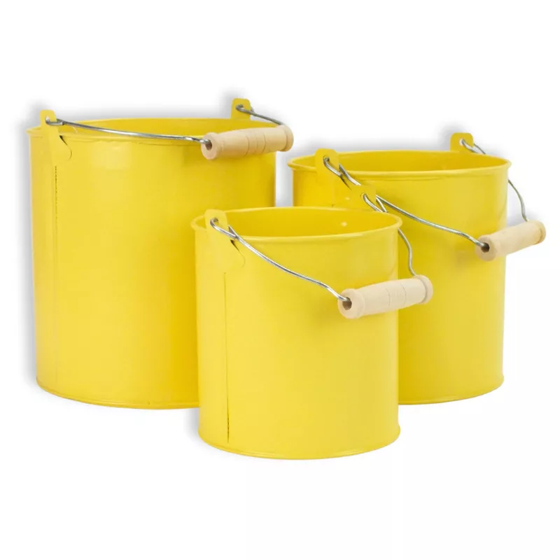 A sárga fém dekorációs csöbör friss és könnyed megjelenést ad a dekorációs összeállításoknak. A szett három darabból áll, egyszerű formavilágával jól kombinálható virágos, szezonális vagy tematikus díszítésekkel. A visszafogott pasztell árnyalat jól illeszkedik tavaszi és nyári dekorációkhoz, ugyanakkor egész évben használható kiegészítő. A fém alapanyag tartós megoldást kínál, a csöbrök önállóan vagy csoportosan elhelyezve is jól érvényesülnek különböző dekorációs koncepciókban.