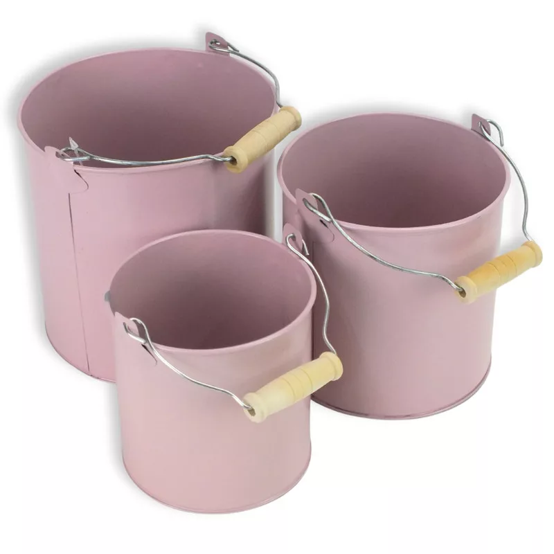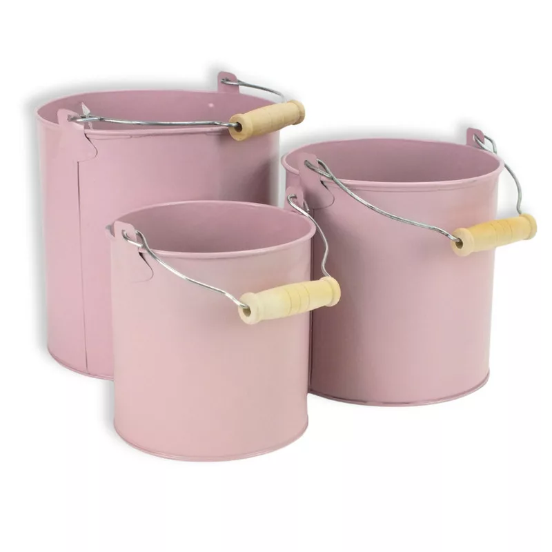 A rózsaszín fém dekorációs csöbör friss és könnyed megjelenést ad a dekorációs összeállításoknak. A szett három darabból áll, egyszerű formavilágával jól kombinálható virágos, szezonális vagy tematikus díszítésekkel. A visszafogott pasztell árnyalat jól illeszkedik tavaszi és nyári dekorációkhoz, ugyanakkor egész évben használható kiegészítő. A fém alapanyag tartós megoldást kínál, a csöbrök önállóan vagy csoportosan elhelyezve is jól érvényesülnek különböző dekorációs koncepciókban.