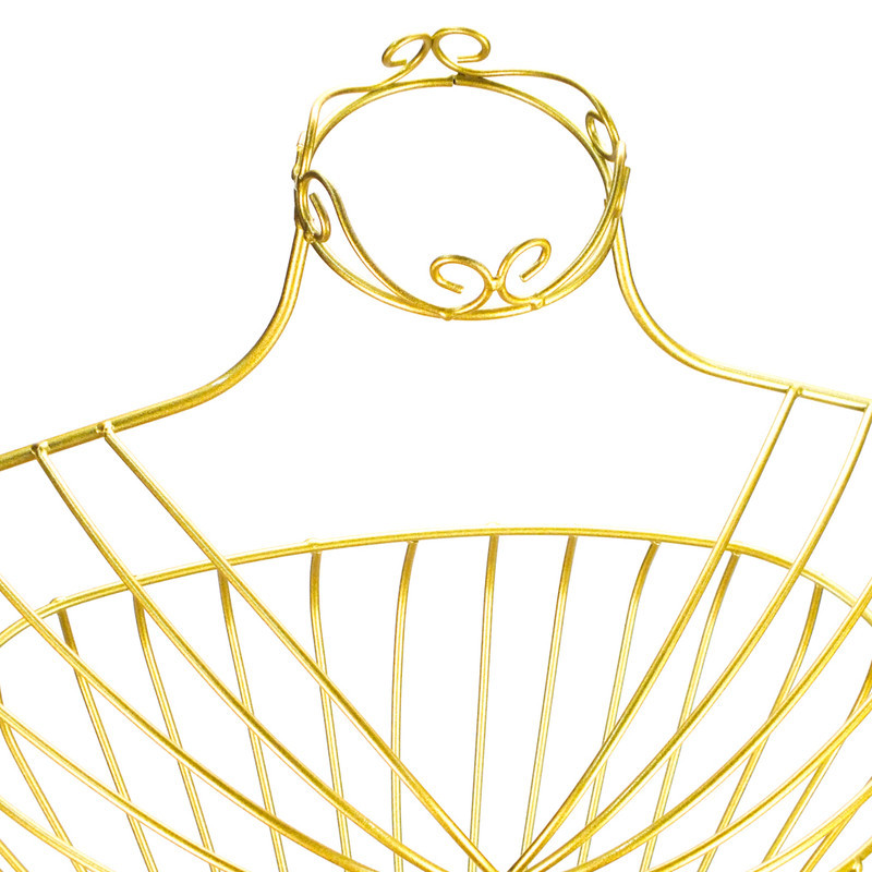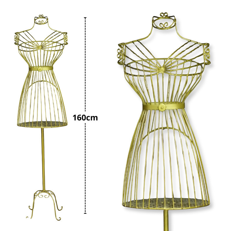 Ez a gyönyörű, arany színű, fémből készült próbababa eleganciát és fényűző megjelenést kölcsönöz bármely térnek. Látványos vonalvezetése és díszes részletei különleges hangulatot teremtenek, legyen szó ünnepi dekorációkról, bemutatóterekről, fotózási helyszínekről vagy exkluzív rendezvényekről.