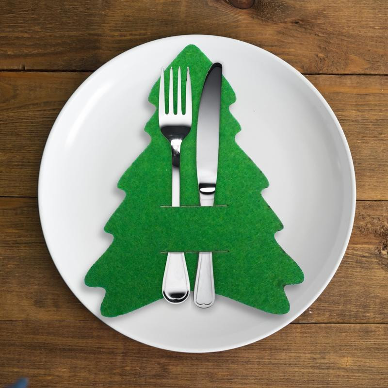 Filcből készült karácsonyfa alakú evőeszköztartó