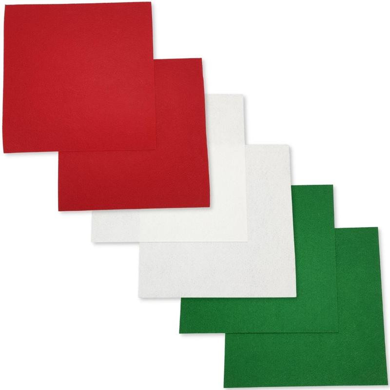 Filc lapok karácsonyi színek piros-fehér-zöld 6db/csomag