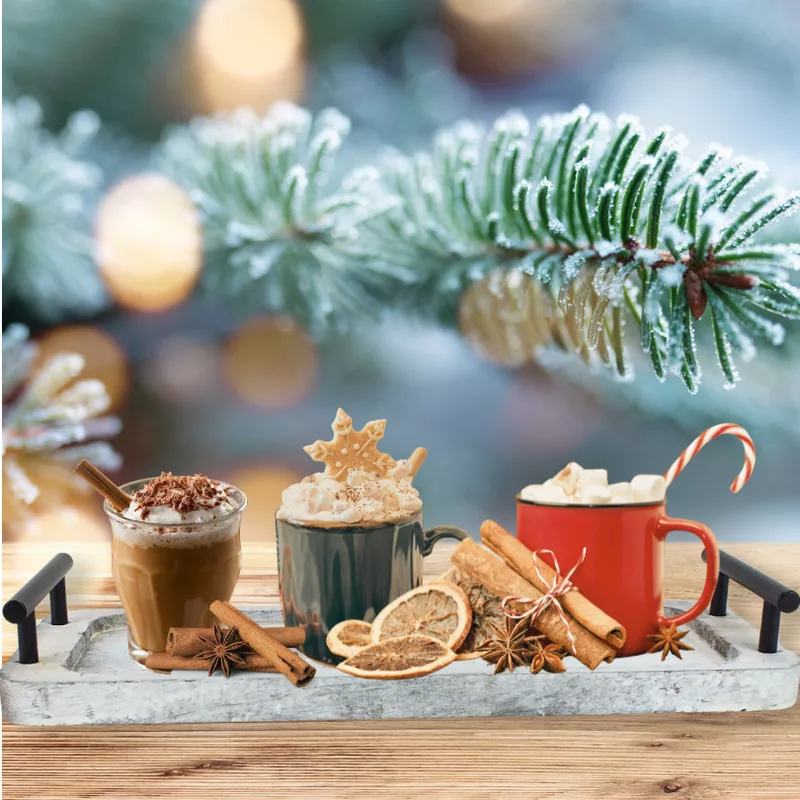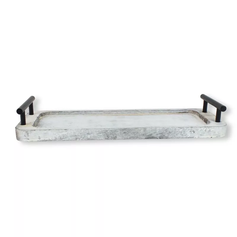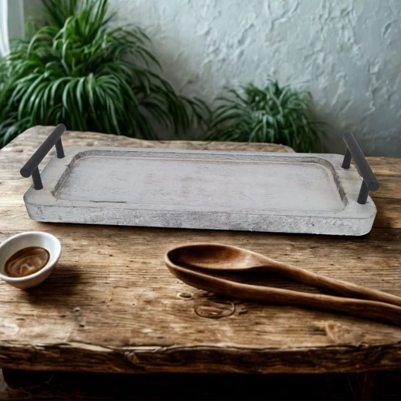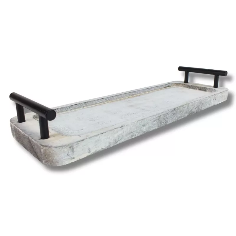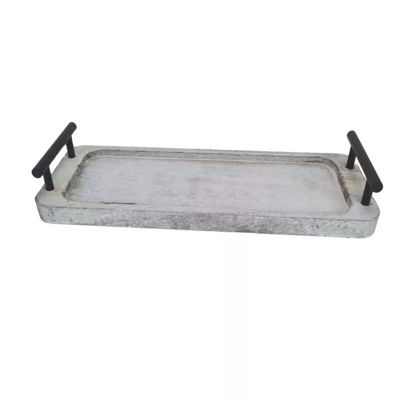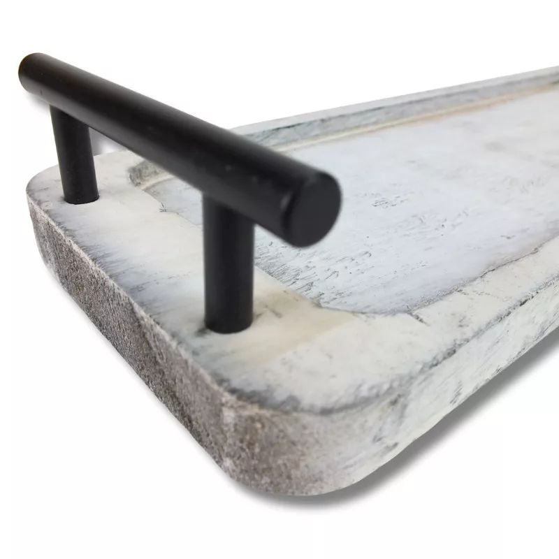 Fogantyús fa tálca vintage fehér 35x12cm