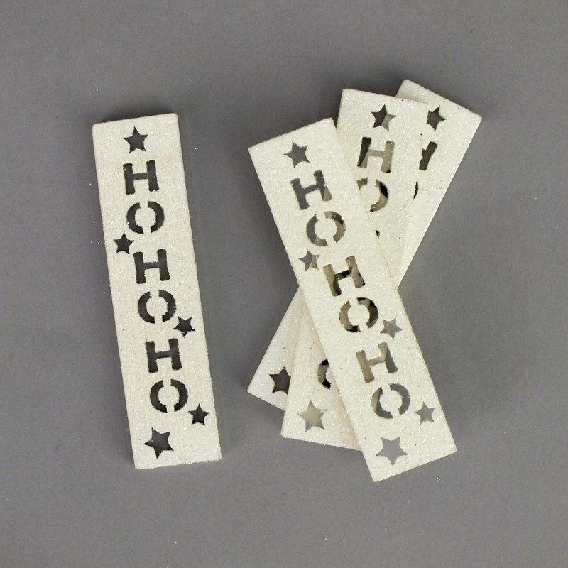 HOHOHO feliratos biléta 4db/csomag - fehér csillámos