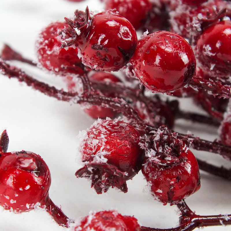 A havas csipkebogyó ág 20 darabos csomagban elegáns, télies hangulatot ad a dekorációnak. A finom, havas hatású bevonat és a természetes formájú bogyók élethű, látványos összhatást biztosítanak. Alkalmas koszorúk, asztaldíszek, virágkompozíciók vagy más kreatív dekorációk készítéséhez. Könnyen kombinálható más művirágokkal, beszúrós bogyókkal és polisztirol tojásokkal, így változatos és harmonikus dekorációkat hozhatsz létre.