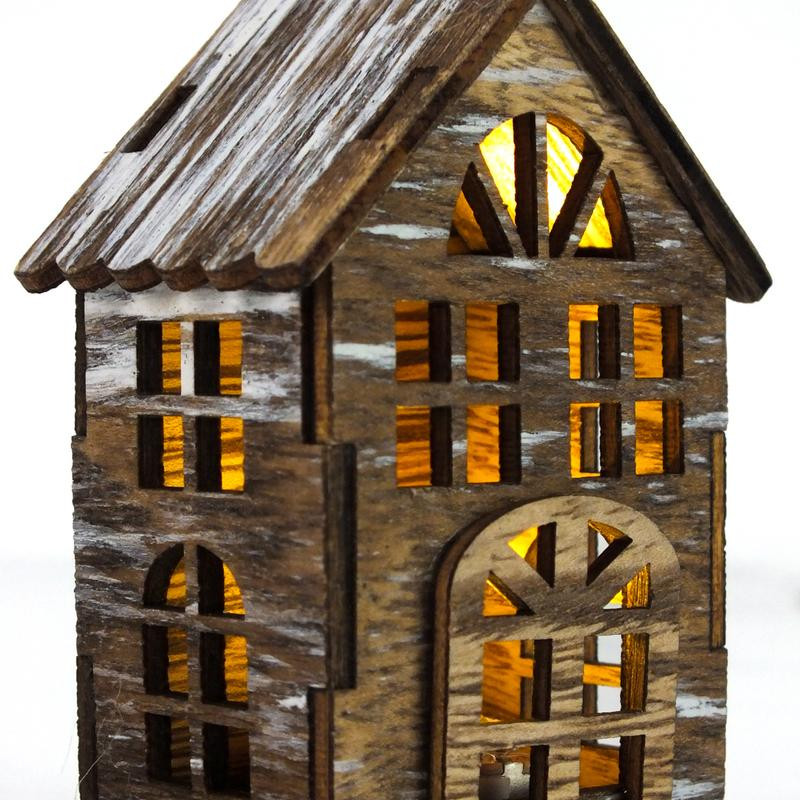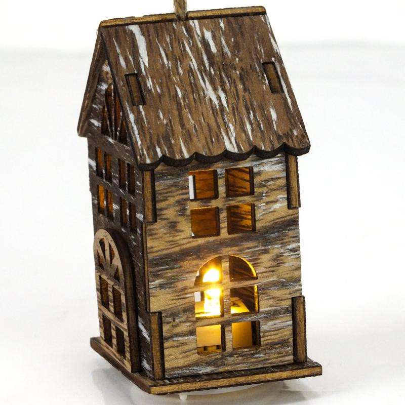 Mini, világítós faház akasztóval, ajtó- és asztaldíszbe vagy karácsonyfára.