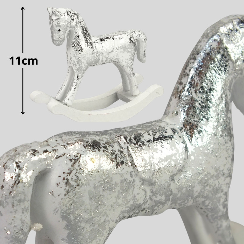 Fából készített díszes hintaló, festett dekor kiegészítő és dekorációs elem.