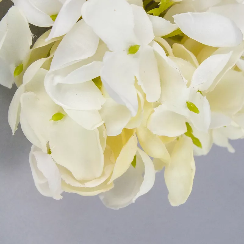 A fehér hortenzia virágfej mű változatban időtlen és elegáns dekorációs megoldás. Részletgazdag kidolgozása és tiszta színvilága természetes hatást kelt, így méltó alternatívája az élő virágnak.Felhasználható koszorúkhoz, asztaldíszekhez, virágdobozokhoz vagy önálló dekorációként is. A fehér szín könnyen kombinálható más árnyalatokkal és dekorációs elemekkel, friss és harmonikus összhatást teremtve. Ideális választás mindazok számára, akik letisztult, időtálló megoldást keresnek.