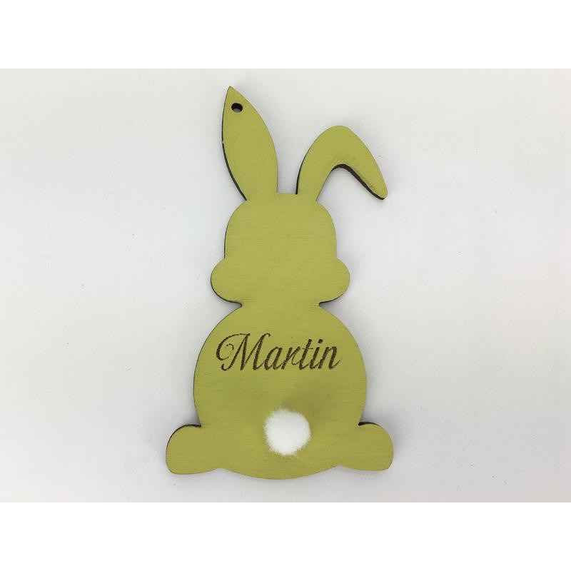 Húsvéti nyuszi egyedi gravírral sárgászöld 8,4x4,6 cm