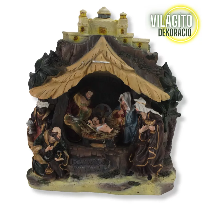 Hozd el otthonodba a karácsony varázsát ezzel a gyönyörű asztali betlehemmel! Aprólékosan kidolgozott figurák és a hangulatos LED fény együtt teremtik meg a meghitt, ünnepi hangulatot. A betlehem minden részlete a hagyományos születésjelenetet idézi meg, így nemcsak dísz, hanem igazi karácsonyi élmény is. A meleg fény finoman kiemeli a figurákat, és különleges légkört varázsol az otthonodba.