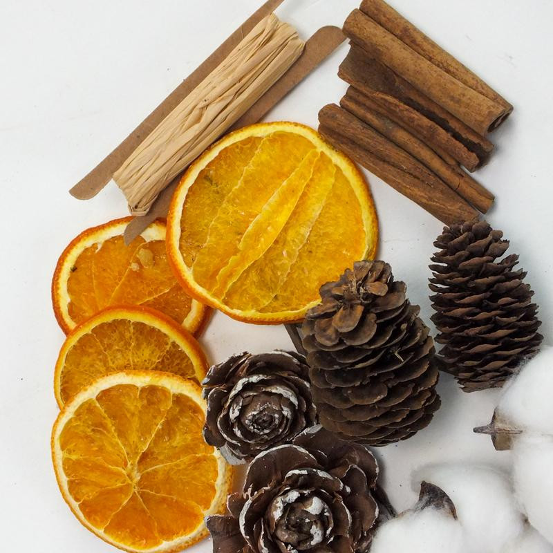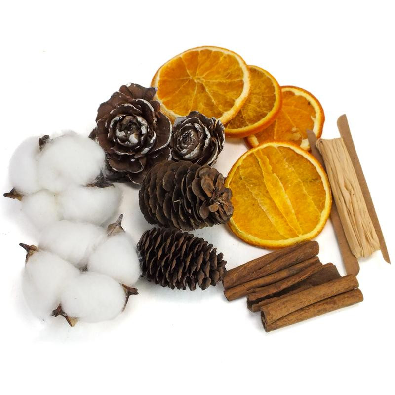 Terméscsomag a karácsony színeiben, különböző igényes dekorációk elkészítéséhez.