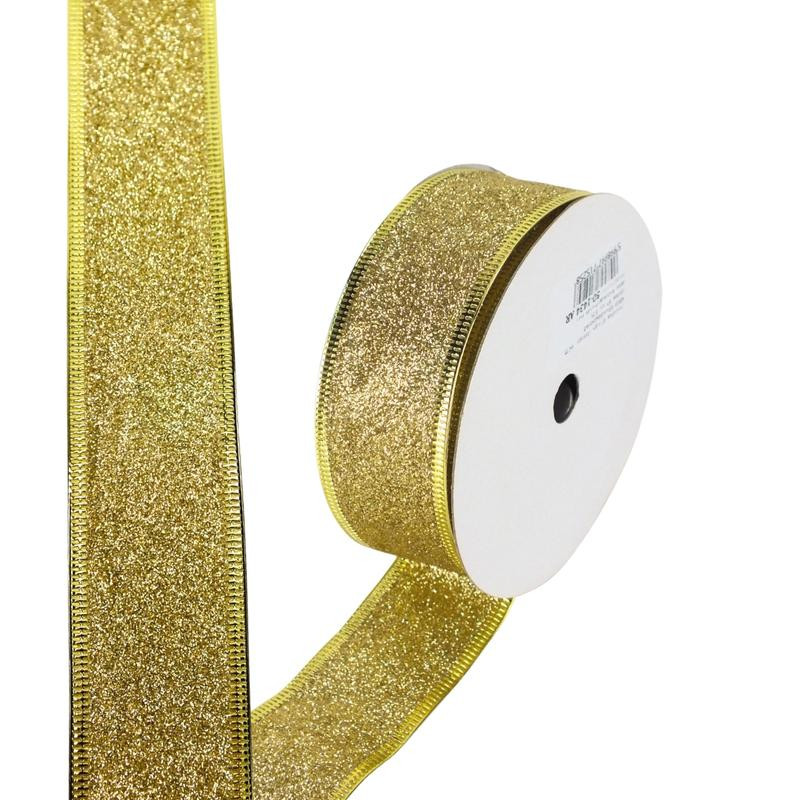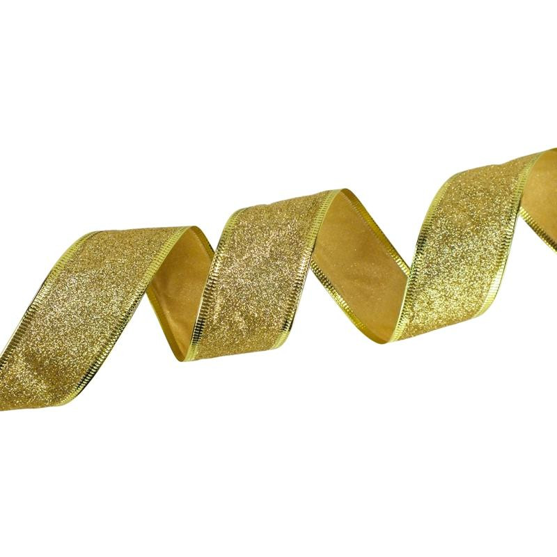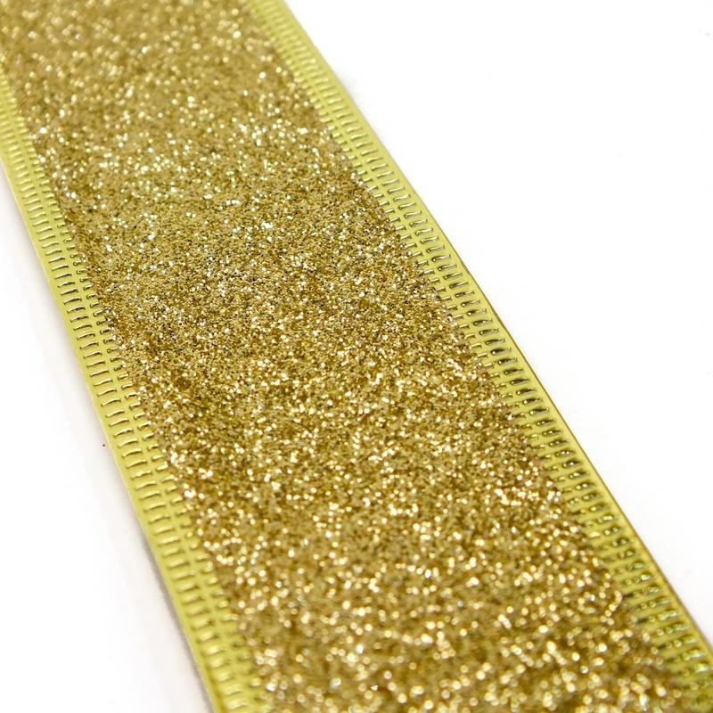 Karácsonyi szalag glitteres - arany, drótos szegéllyel