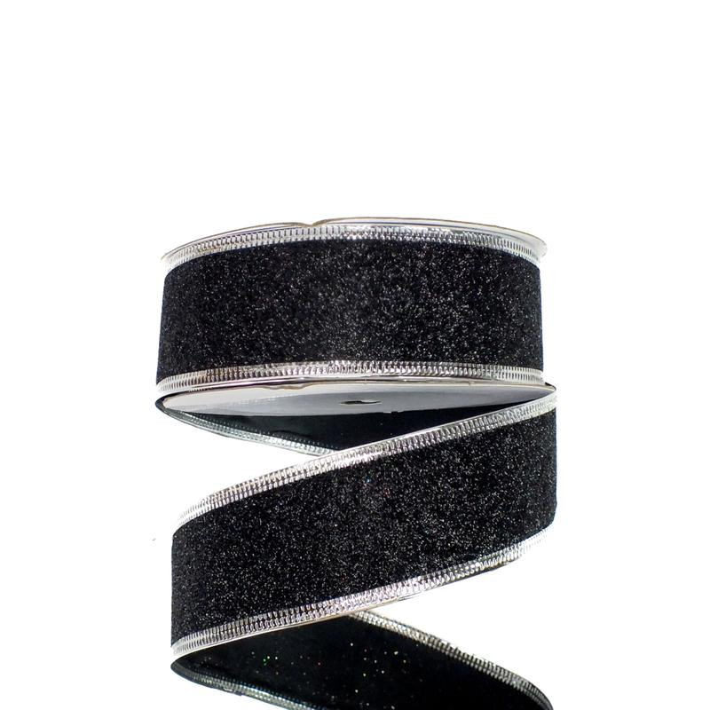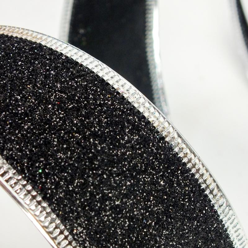Karácsonyi szalag glitteres - fekete, drótos szegéllyel