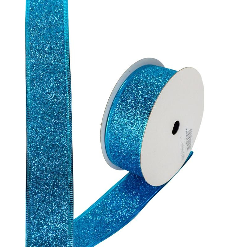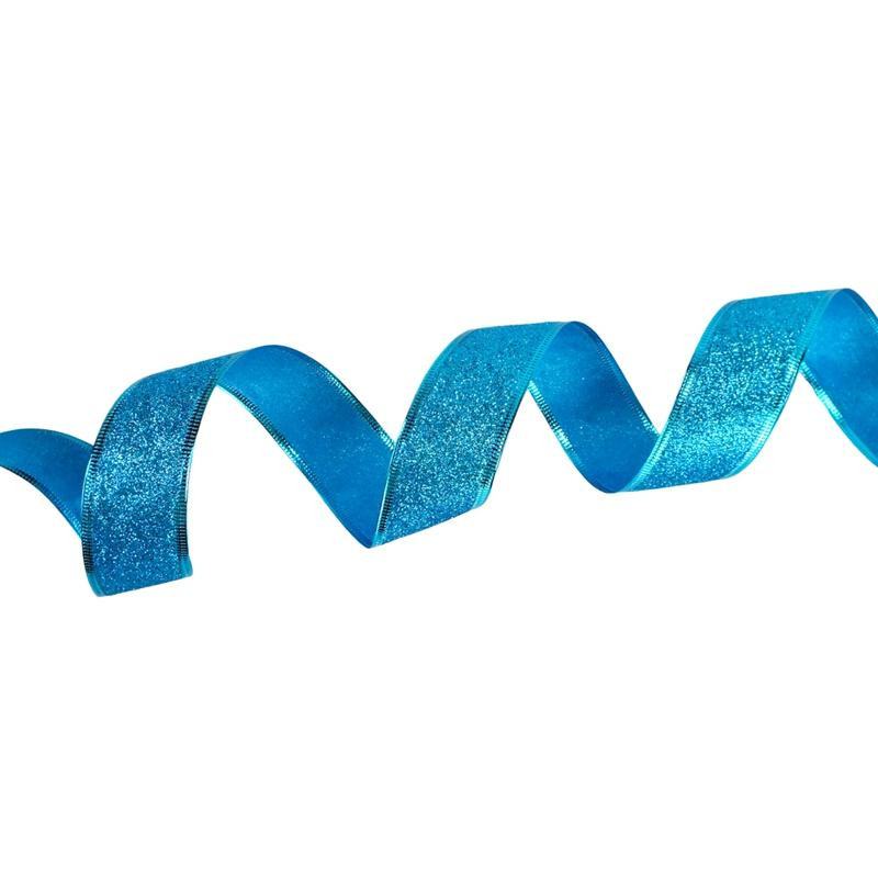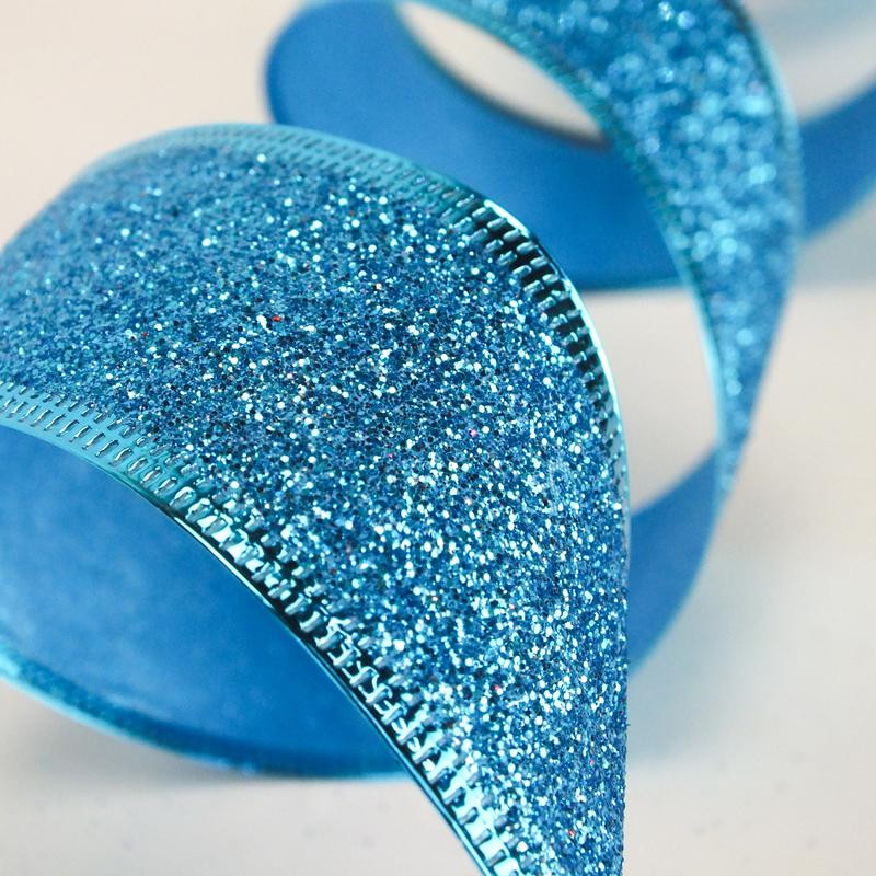 Karácsonyi szalag glitteres - kék, drótos szegéllyel