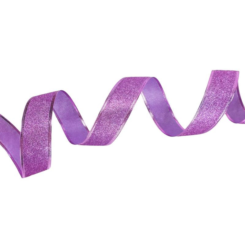 Karácsonyi szalag glitteres - lila, drótos szegéllyel