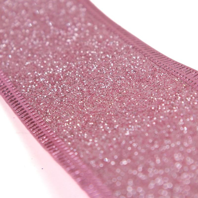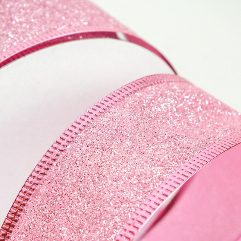 Karácsonyi szalag glitteres - rózsaszín, drótos szegéllyel