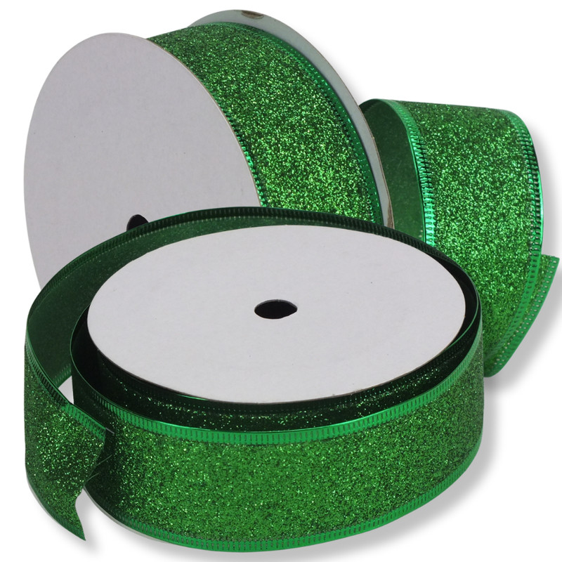 Karácsonyi szalag glitteres - zöld drótos szegéllyel