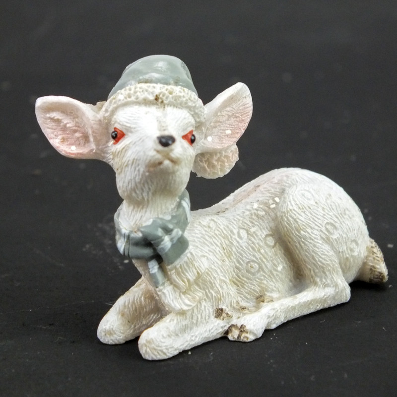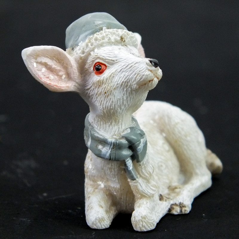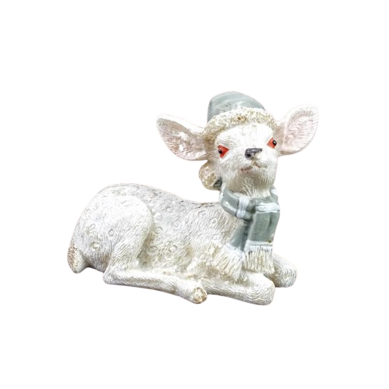 Kerámia glitteres fekvő fehér őzike sapkában 2 féle