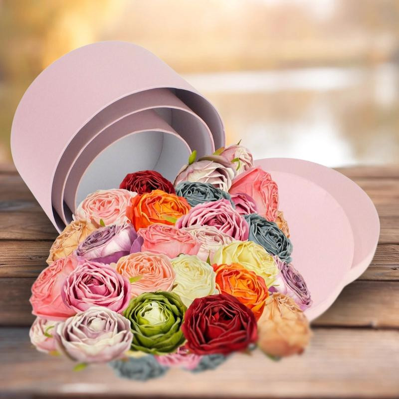 Kerek papírdoboz pasztellrózsa 3db/szett