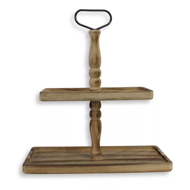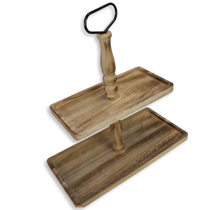 Ez a barna, kétszintes fa kínáló tál elegáns és praktikus megoldás dekorációkhoz és tálaláshoz. A 40×20 cm-es tálak és a 45 cm összmagasság látványos, emelt megjelenést biztosít, így tökéletes kompozíciók, szezonális vagy ünnepi díszítések kialakításához. Természetes fa hatása jól illik rusztikus, vintage vagy modern dekorstílusokba.