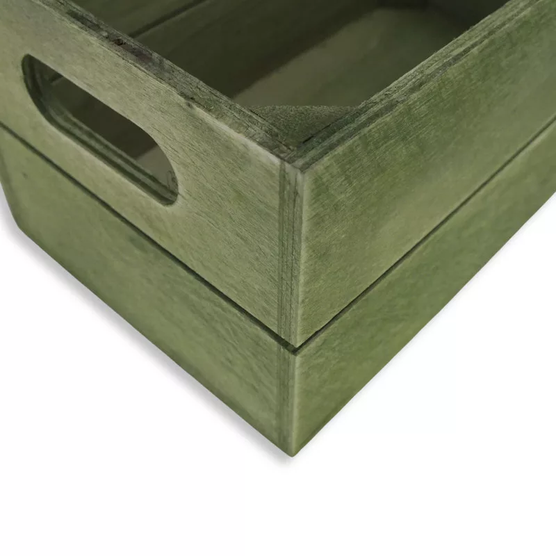 Ez a country zöld kis fa rekesz stílusos és sokoldalú dekorációs alap. Természetes, mégis karakteres megjelenése jól illik tavaszi, vintage, country vagy ünnepi kompozíciókhoz. Használható virágos dekorációkhoz, ajándékcsomagokhoz, tálaláshoz vagy termékfotók részeként.