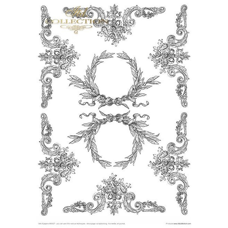 Egyedülálló készlet minden kreatív tevékenységhez, mint például decoupage, scrapbooking, kártyakészítés, művészeti napló és sok más. A készlet 3 db rizspapírból, 2 db átlátszó fóliából, 4 db pergamenből, 2 db nátronpapírból áll, kifejezetten erre a célra. A készlet fő ötlete az, hogy összegyűjtse a tökéletesen illeszkedő grafikák csoportját,  amelyeket úgy választanak ki, hogy az összes termék egységes egésszé épüljön fel. Ez egy tökéletesen összehangolt csomag. Csak találj egy ötletet a használatához