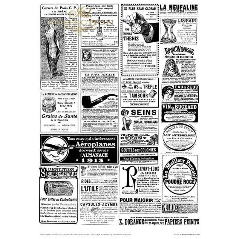 Egyedülálló készlet minden kreatív tevékenységhez, mint például decoupage, scrapbooking, kártyakészítés, művészeti napló és sok más. A készlet 3 db rizspapírból, 2 db átlátszó fóliából, 4 db pergamenből, 2 db nátronpapírból áll, kifejezetten erre a célra. A készlet fő ötlete az, hogy összegyűjtse a tökéletesen illeszkedő grafikák csoportját,  amelyeket úgy választanak ki, hogy az összes termék egységes egésszé épüljön fel. Ez egy tökéletesen összehangolt csomag. Csak találj egy ötletet a használatához
