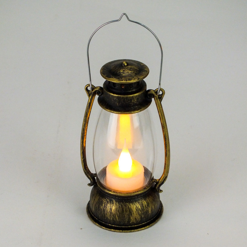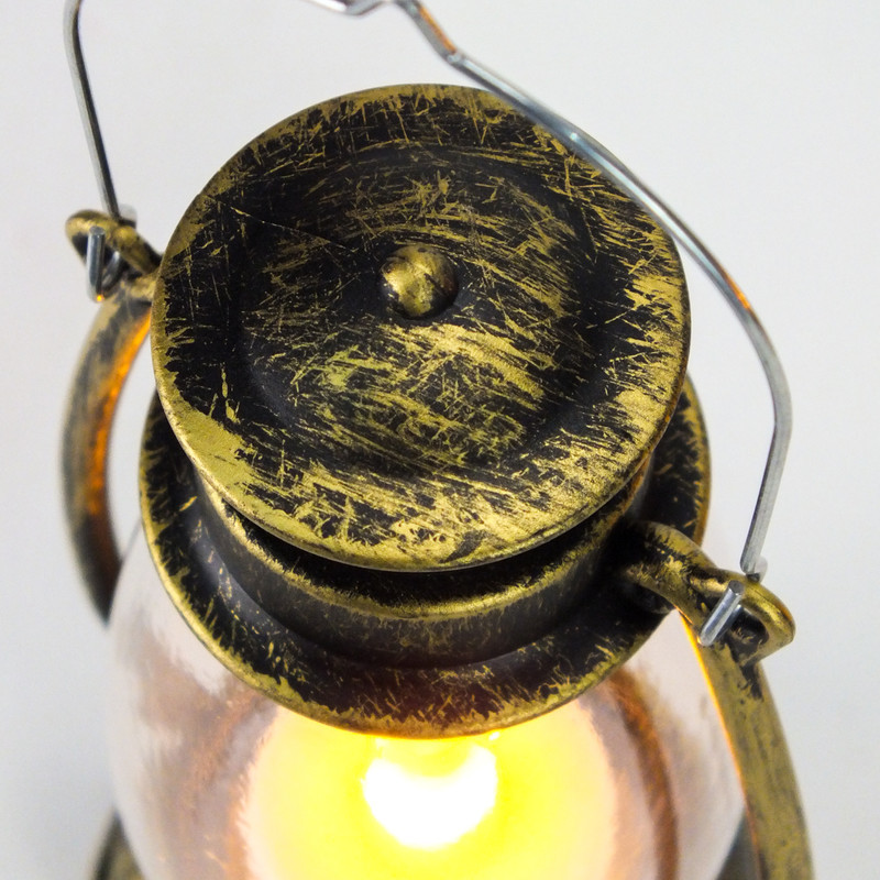 Koptatott fém hatású, műanyag világító elemes lámpás. A lámpás használható önmagában, vagy koszorúkra és díszekre, kegyeleti dekorációkhoz. Akasztó füllel ellátott, és teljesen ellenáll az időjárási viszontagságoknak. A lámpásokban az elem tartozékként megtalálható.