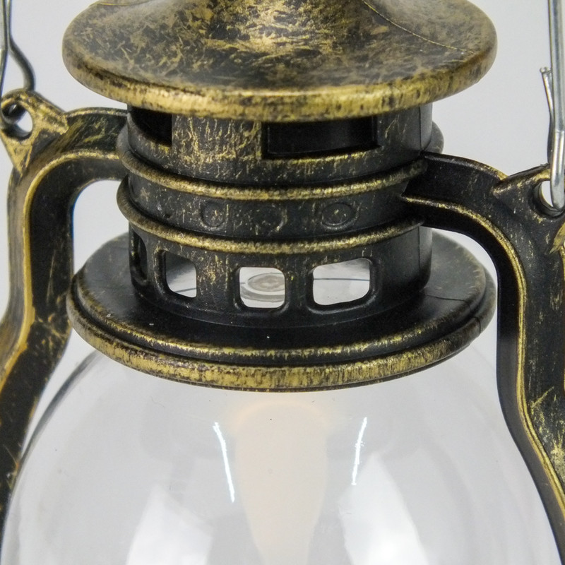 Koptatott fém hatású, műanyag világító elemes lámpás. A lámpás használható önmagában, vagy koszorúkra és díszekre, kegyeleti dekorációkhoz. Akasztó füllel ellátott, és teljesen ellenáll az időjárási viszontagságoknak. A lámpásokban az elem tartozékként megtalálható.