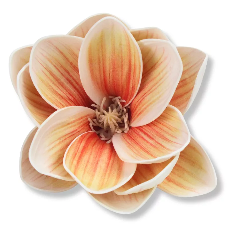 Ez a narancs színű polifoam magnólia fej élethű kidolgozásával friss, élénk színfoltot ad a dekorációknak. Kiváló választás tavaszi és nyári koszorúkhoz, virágdíszekhez és szezonális összeállításokhoz. Formája és színe jól kombinálható más virágokkal és természetes dekorációs elemekkel, harmonikus összhatást teremtve.