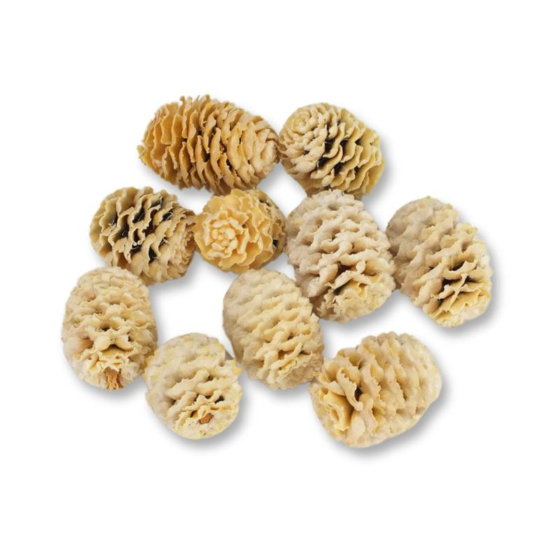 Fehérített toboz terméscsomag különböző igényes dekorációk elkészítéséhez.