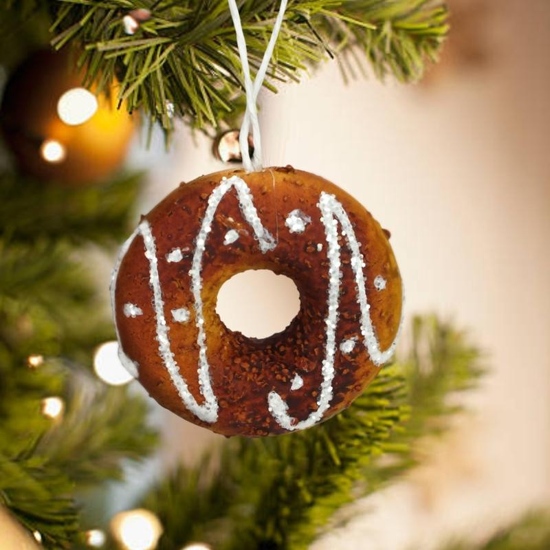 Fánk alakú mézeskalács karácsonyfadísz, akasztóval ellátva.