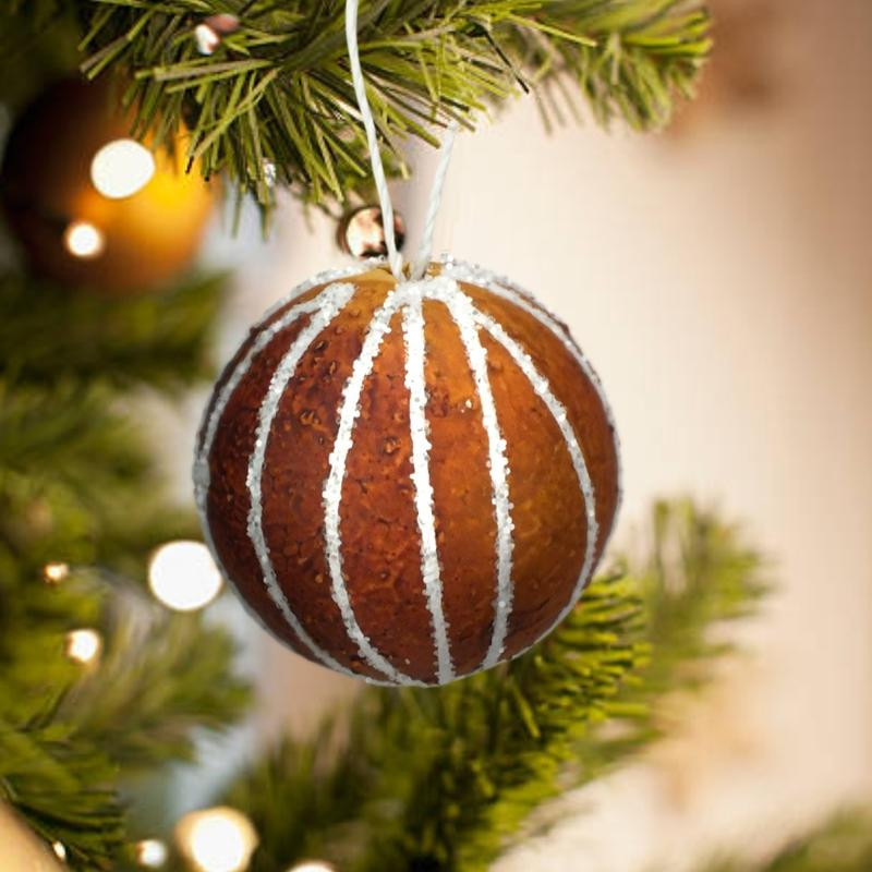 Két darabos gömb alakú mézeskalács karácsonyfadísz szett, akasztókkal ellátva.