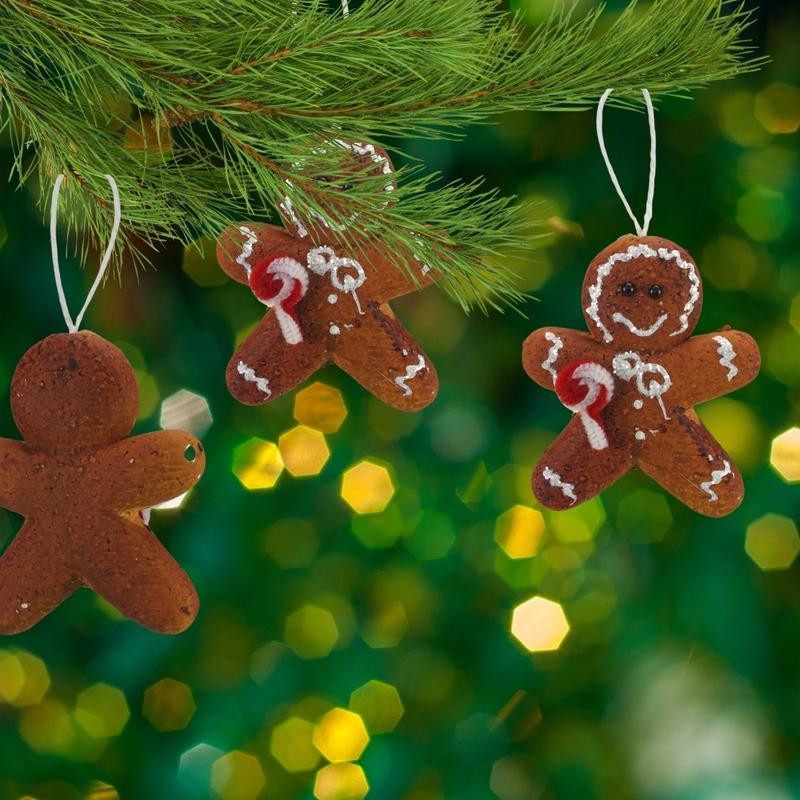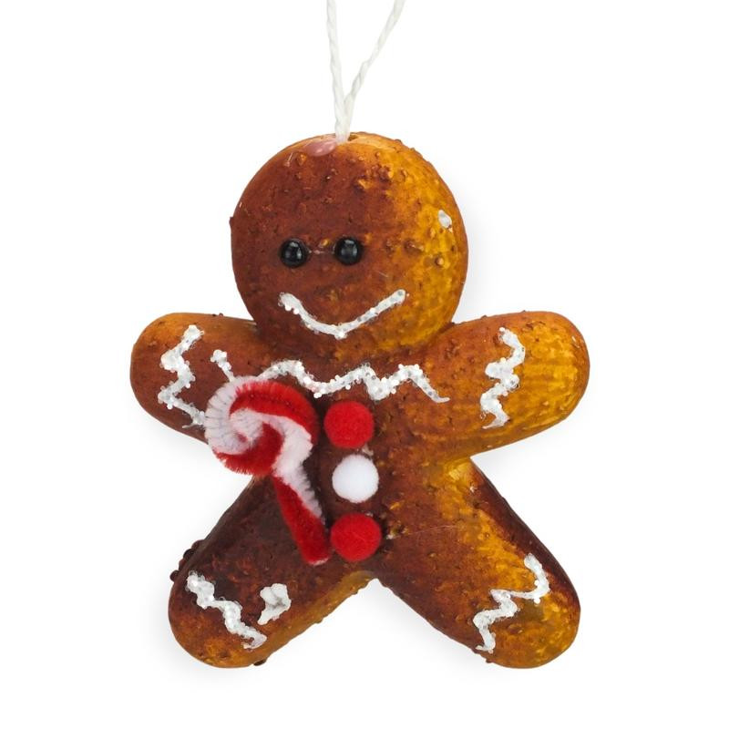 Mézeskalács figura alakú karácsonyfadísz, akasztóval ellátva.