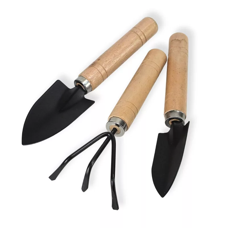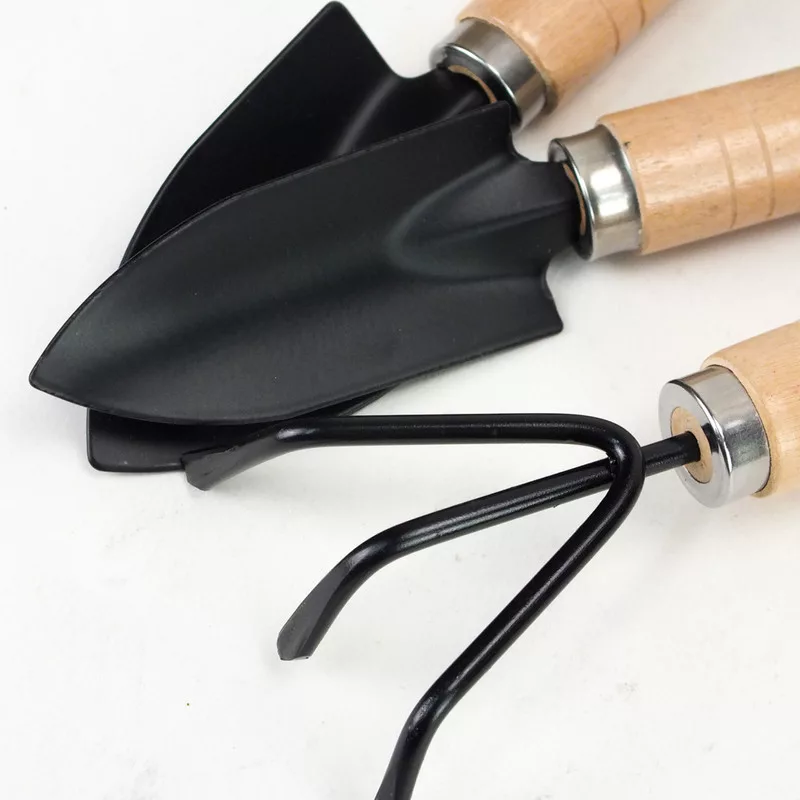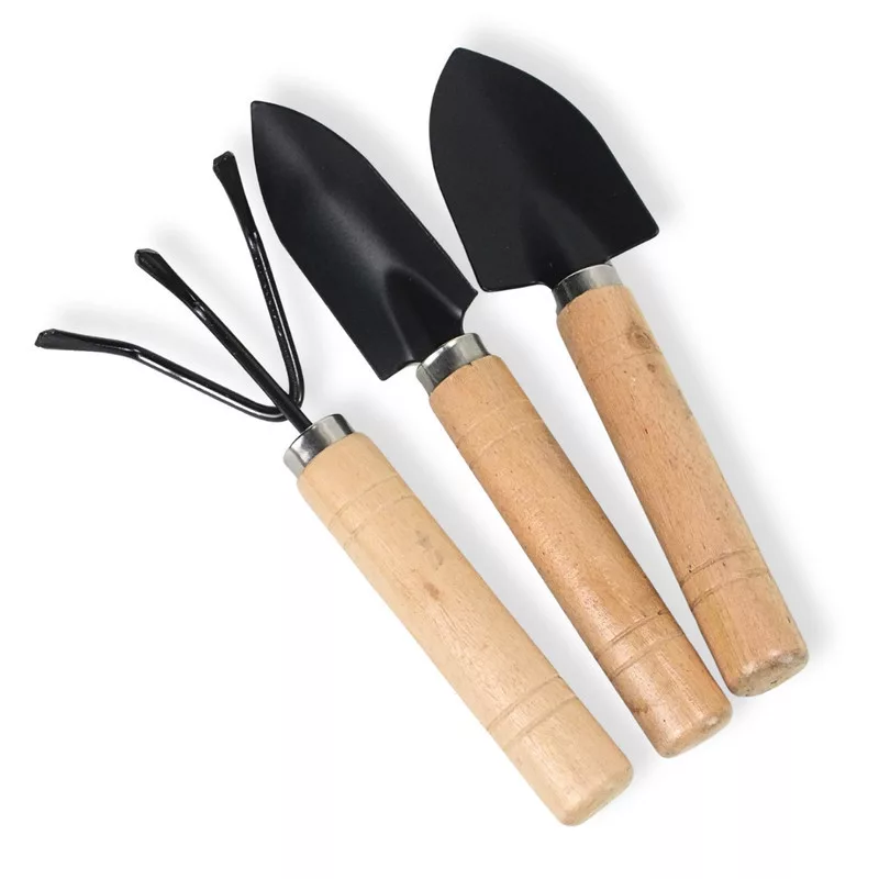 Mini kerti szerszámok szett otthoni, cserepes növények átültetéséhez és apróbb kertészeti műveletekhez. 3 különböző eszköz minden helyzetre.